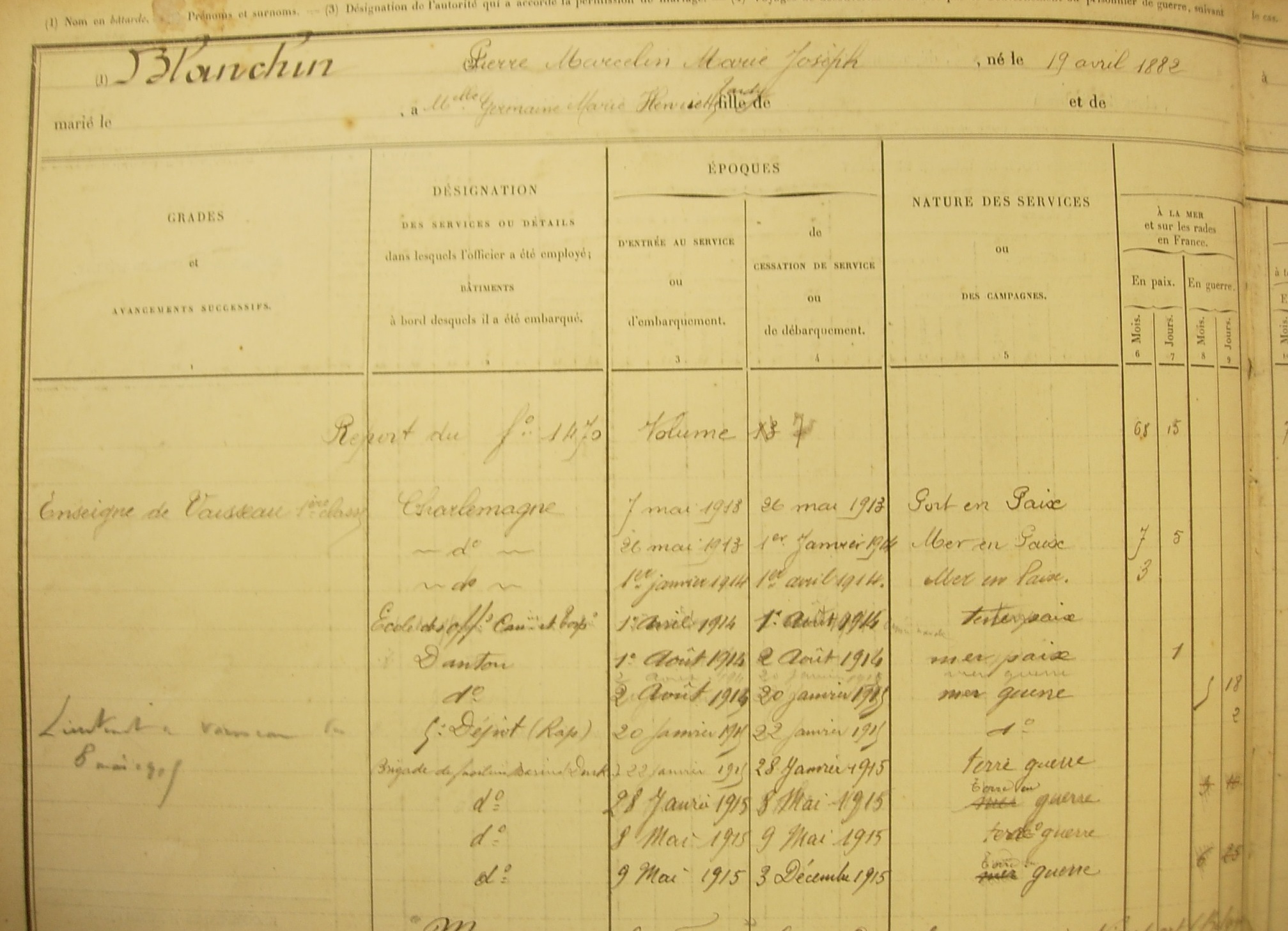 l'Armée navale : "A la brigade depuis 10 mois ; a commandé