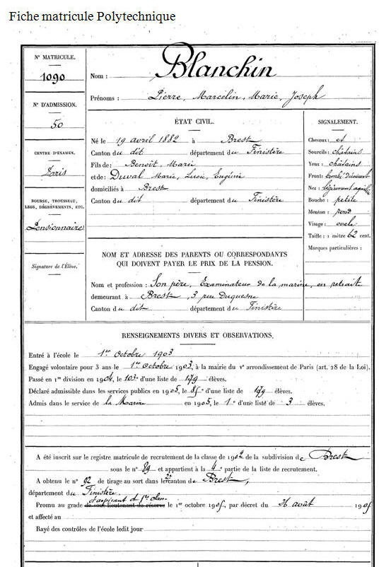 Élève de l'École polytechnique en 1903, opte pour la Marine.