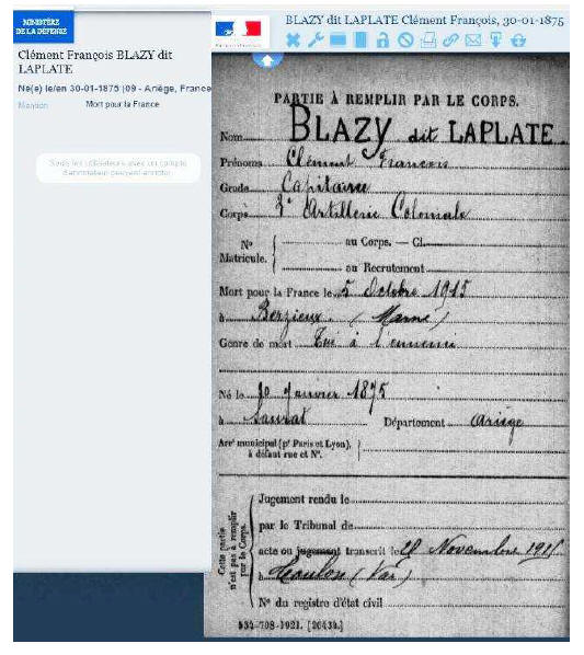SAURAT (Ariège) - Tué le 5 octobre 1915 à BERZIEUX (Marne).