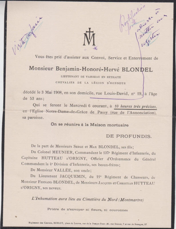à COUTANCES (Manche) - Décédé le 3 mai 1908 à PARIS XVIème (Seine)