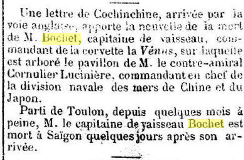 PARIS IIème (Seine) - Décédé le 12 août 1869 à SAÏGON, COCHINCHINE.