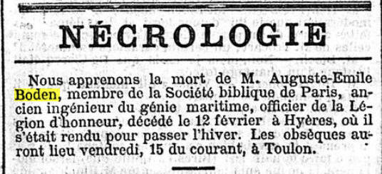 Né le 23 février 1834 à STRASBOURG (Bas-Rhin) - Décédé le 12 février