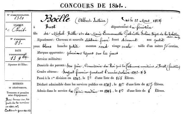 Sous-ingénieur de 1ère classe le 19 février 1853, affectation Brest