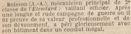 Le 25 avril 1917, en service sur le contre-torpilleur "ÉTENDARD"