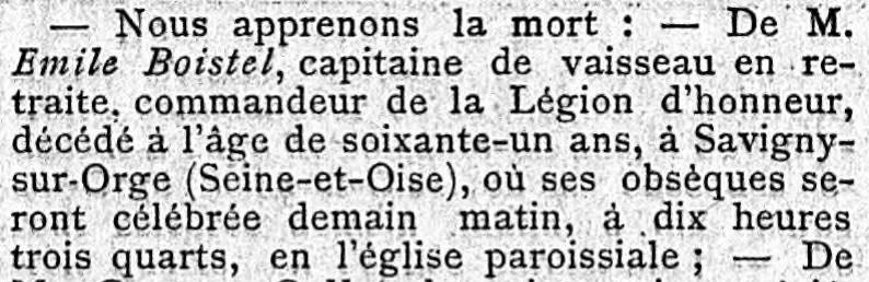 (Manche) - Décédé le 23 juin 1903 à SAVIGNY-sur-ORGE (Essonne).
