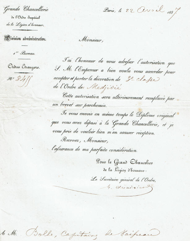 d'Honneur le 12 juin 1856.  Au 1er janvier 1857,