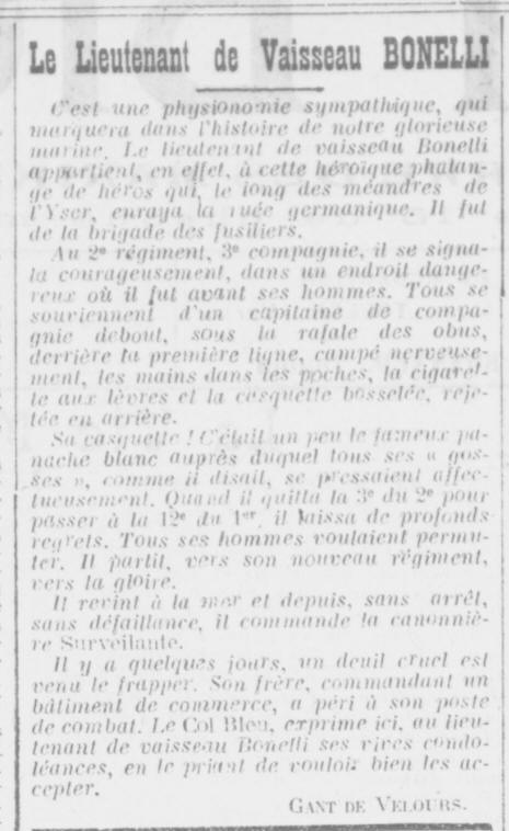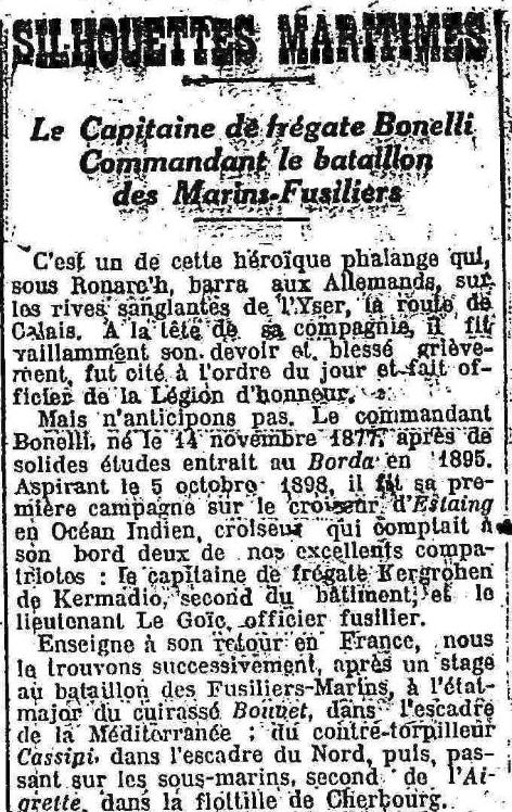 des Fusiliers Marins, il est cité à l'ordre de l'Armée navale en