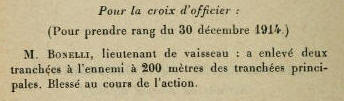 janvier 1915 : " A enlevé deux tranchées à l'ennemi à 200 mètres des