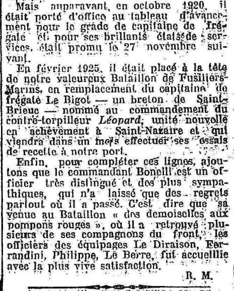 fusiliers marins de LORIENT, du 25 février 1925 au 1er octobre 1926