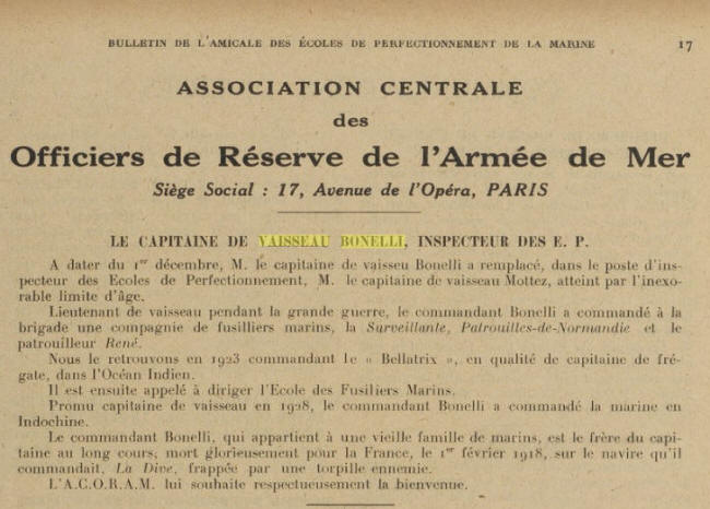 sur le cuirassé "COURBET", 1ère Escadre, 1ère Armée navale (Cdt