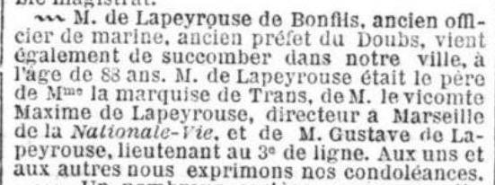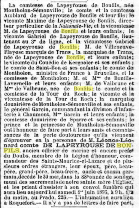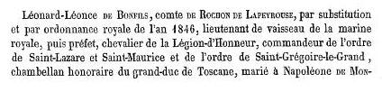 Léonce Léonard de Bonfils de La Bleynie, releva le nom de de sa mère