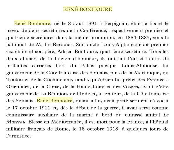 On peut en conclure que René Bonhoure avait été réformé ou gravement