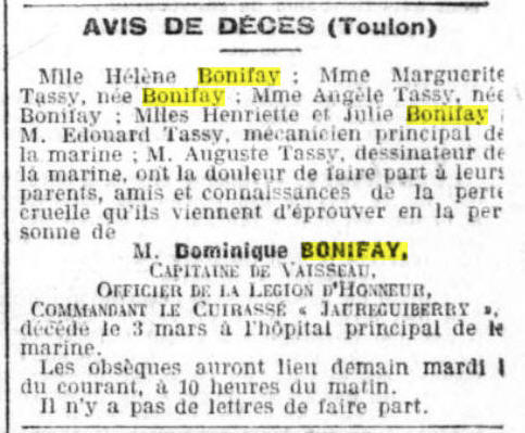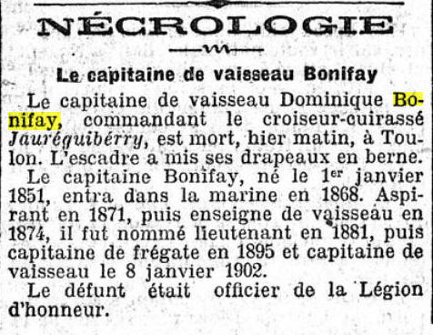 à TOULON (Var) - Décédé le 3 mars 1907 à l' Hôpital maritime