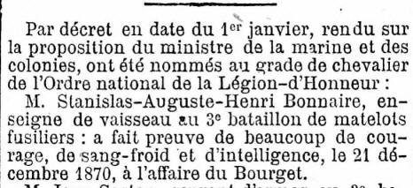 d'Honneur le 30 décembre 1891, étant alors Second sur le "SUFFREN"