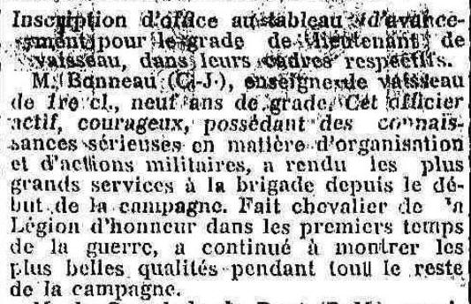 blessé et cité à l'ordre de l'Armée navale en décembre suivant : "