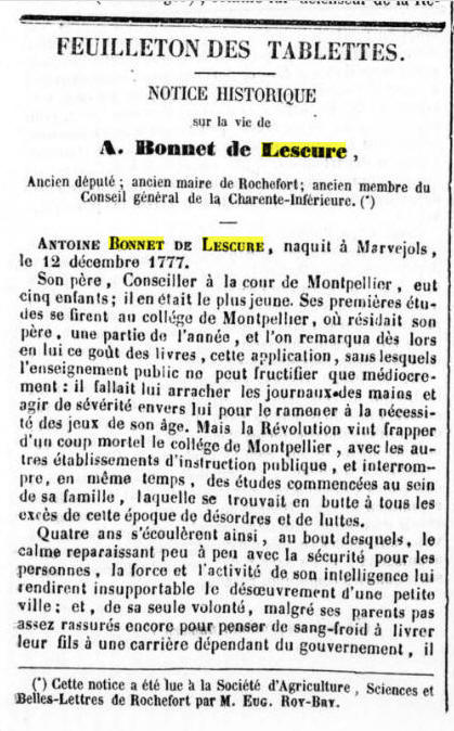 Source Les Tablettes des Deux Charentes / 23 juillet 1851