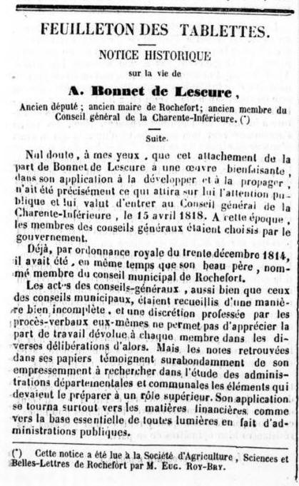 Source Les Tablettes des Deux Charentes / 26 juillet 1851