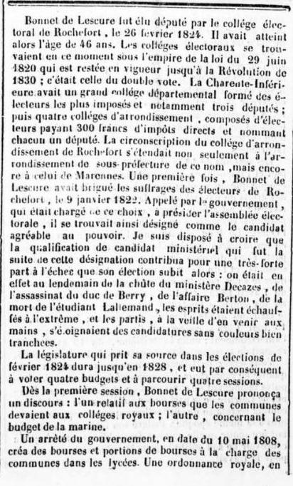 28 janvier 1822 : il se présente aux élections de la Chambre des