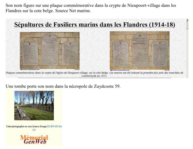 (Seine) - Décédé le 4 juin 1915 à ZUYDSCHOOTE (Flandre occidentale),