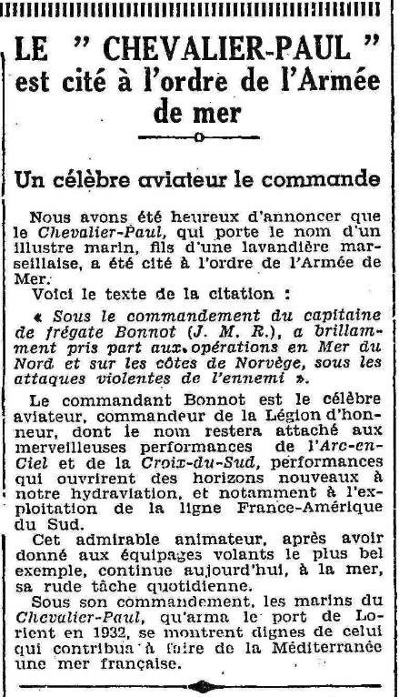 Capitaine de Corvette Bonnot, premier pilote: Lieutenant de