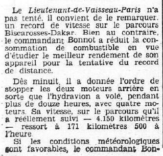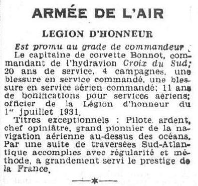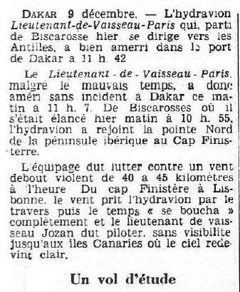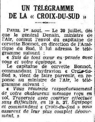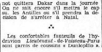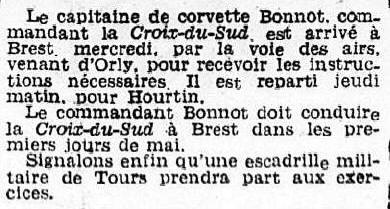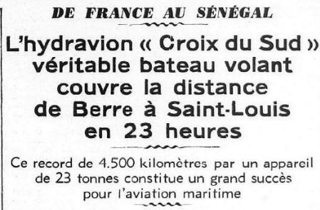 Fin décembre 1933, la "Croix du Sud", piloté par le Capitaine de