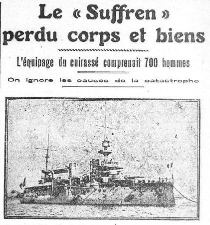 disparu en mer le 26 novembre 1916 avec le "SUFFREN" (torpillé par