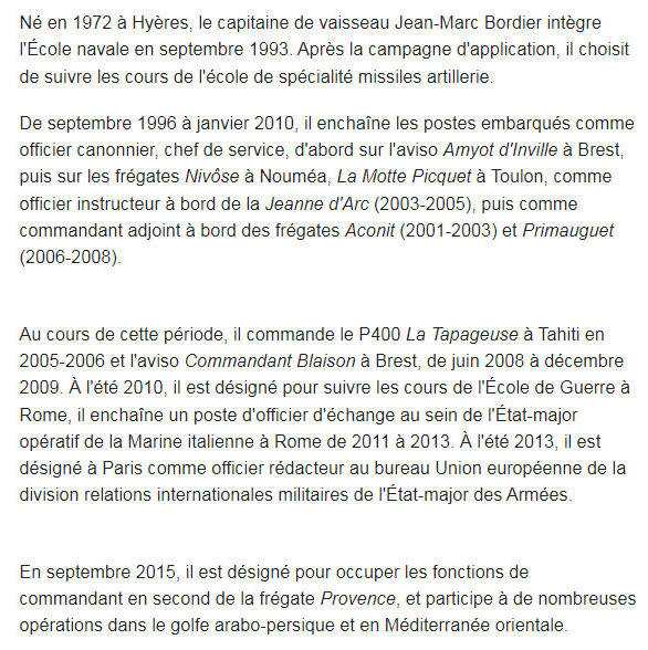capitaine de vaisseau. Chevalier du 11 novembre 2015. Cité.