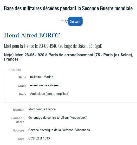 l'enseigne de vaisseau Borot a reçu la citation suivante à l'ordre