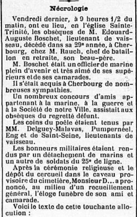 Décédé le 5 février 1892 à CHERBOURG (Maznche)