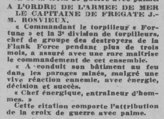 Commandant le torpilleur "FORTUNÉ", et la 3ème Division de