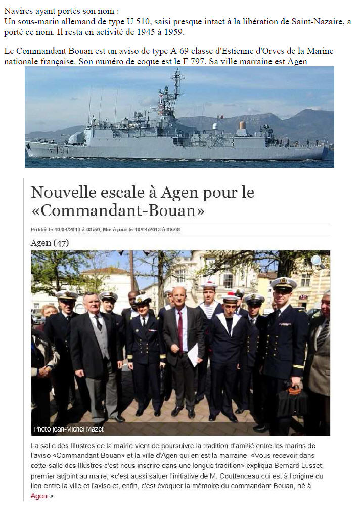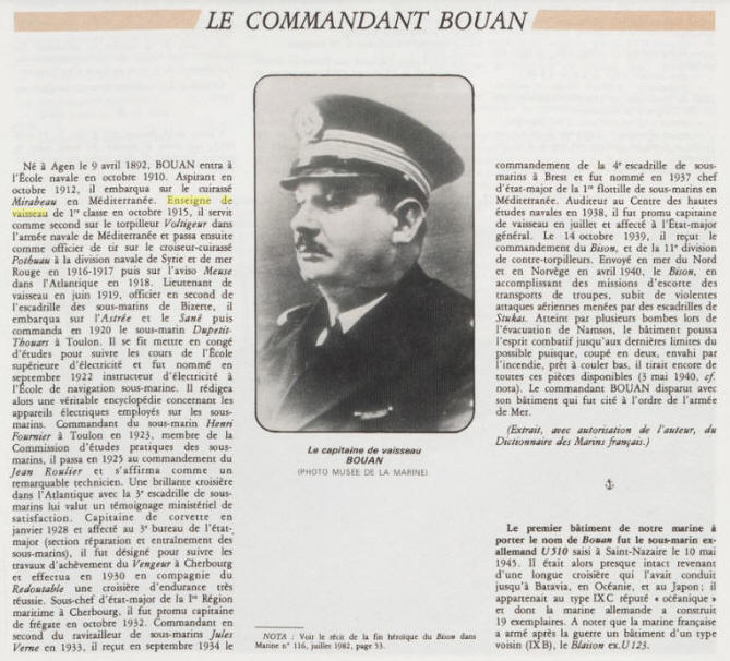 l'arrière et sur le pont. Le Capitaine de Vaisseau Bouan est tué à