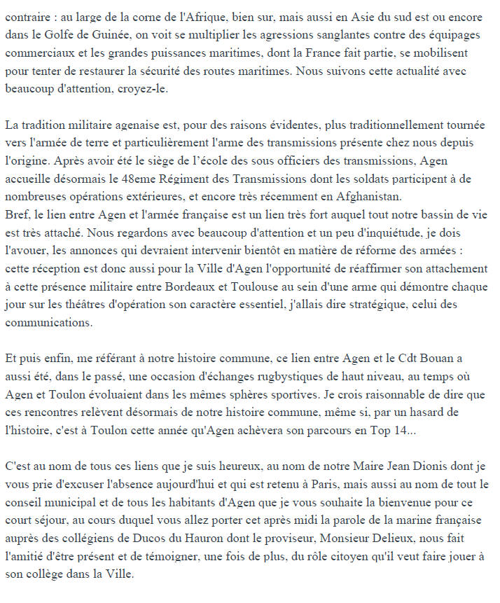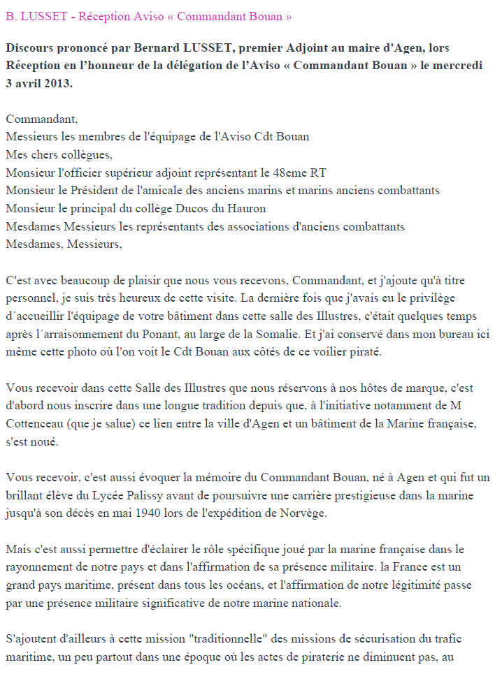 la mémoire du capitaine de vaisseau Bouan et des 200 marins du