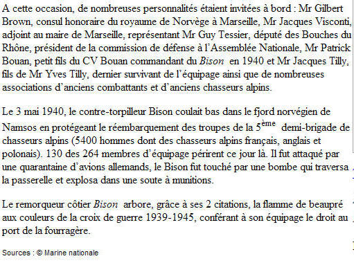 Le Bison commandé par le Capitaine de Vaisseau Bouan prend part aux