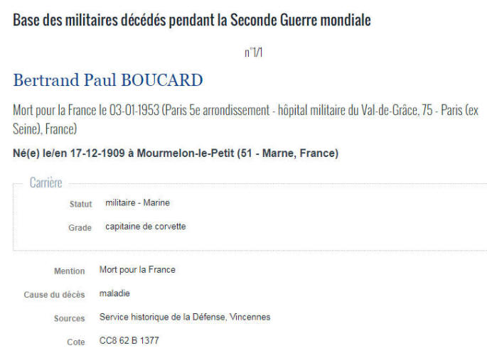 à MOURMELON-le-PETIT (Marne) - Décédé le 3 janvier 1953 à l'Hôpital