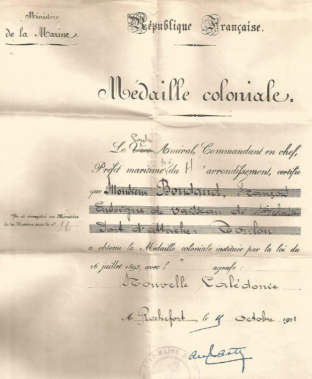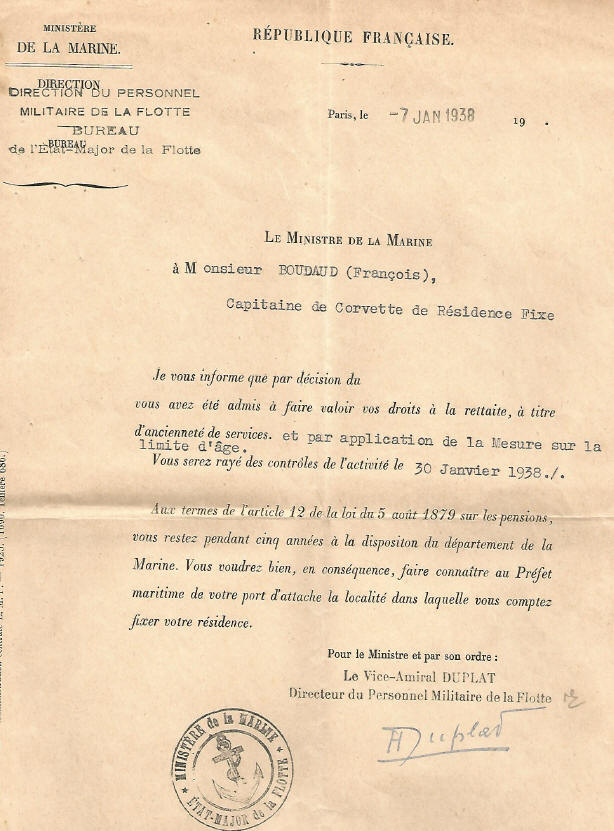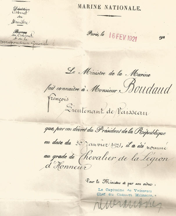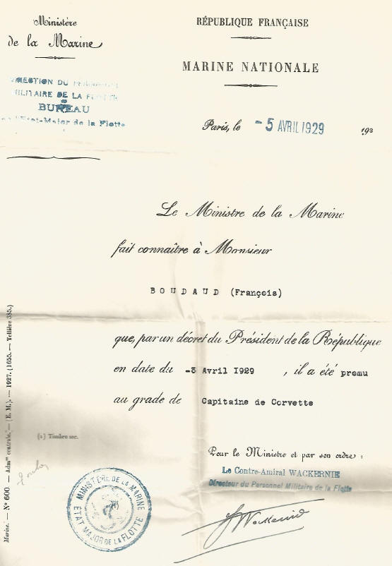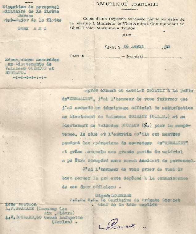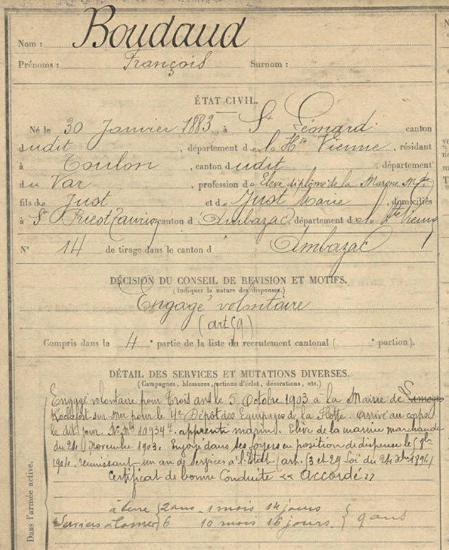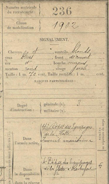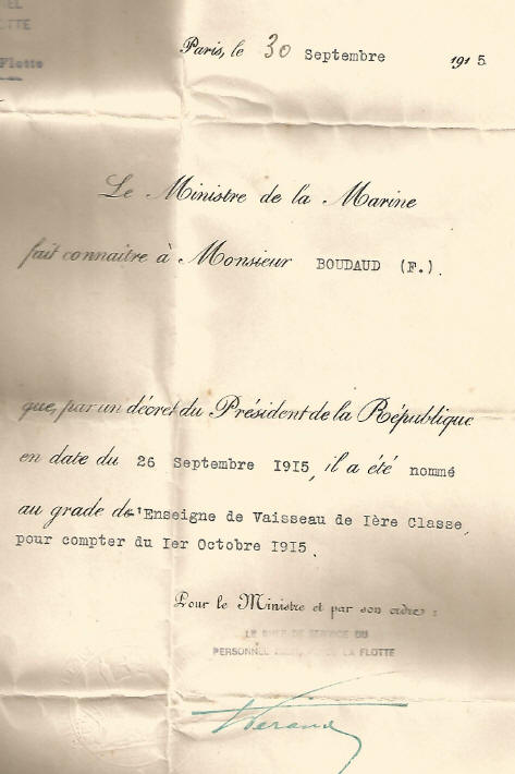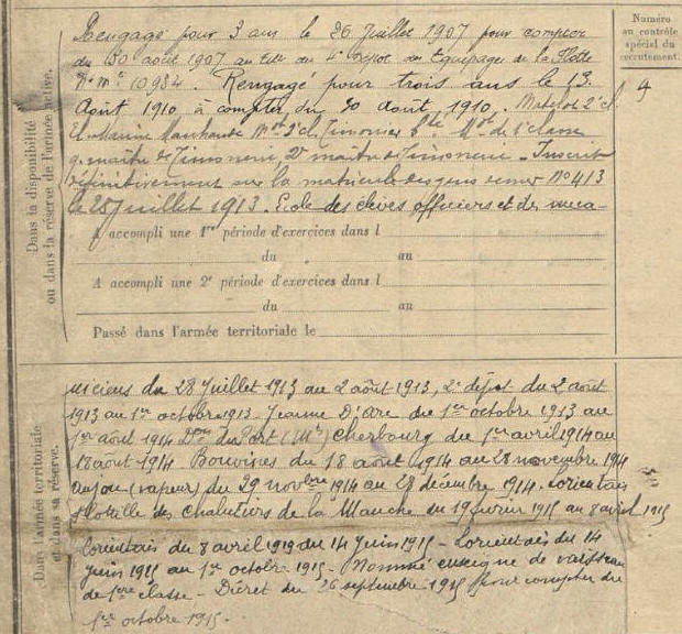 vaisseau de 1ère classe le 1er octobre 1915, port TOULON.
