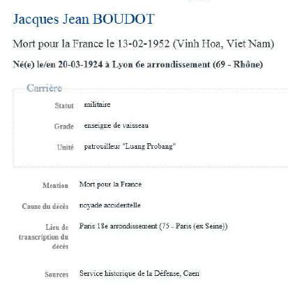 - Décédé le 13 février 1952 à VINH-HOA, VIETNAM.