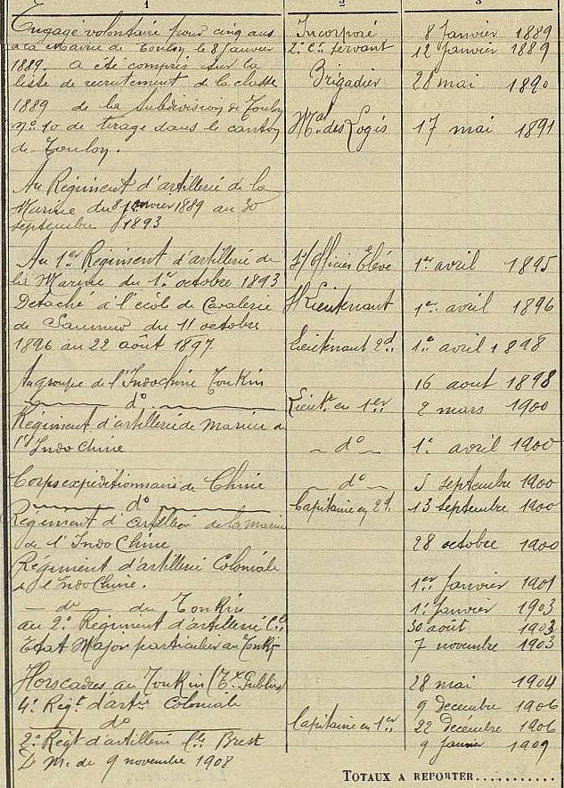 d'artillerie coloniale, au 1er Régiment de l'artillerie de montagne