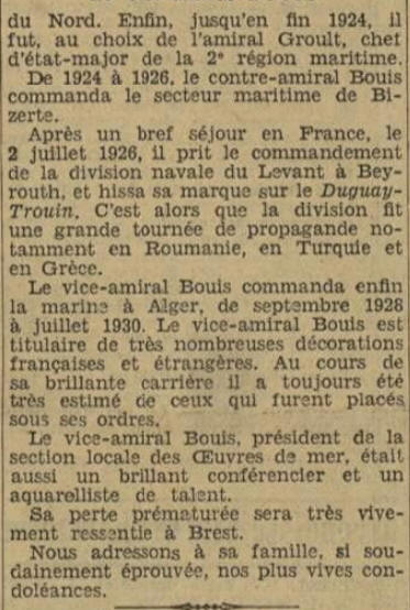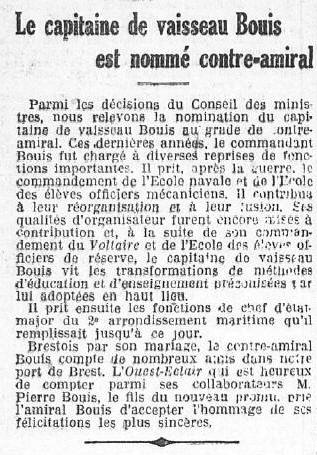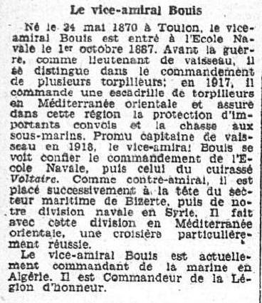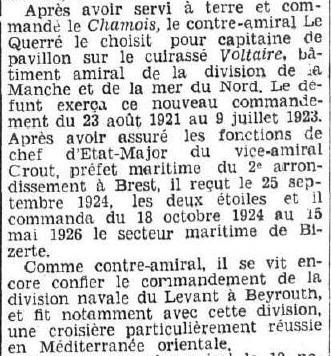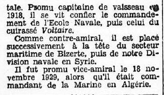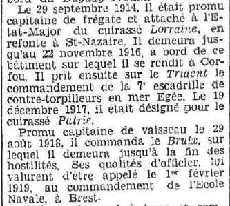 En 1919, Commandant un torpilleur d'escadre et l'École navale.