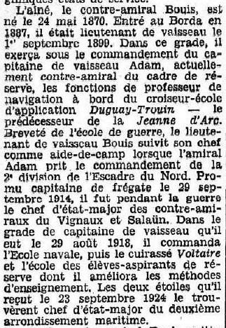 Au 1er janvier 1911, sur le cuirassé "BOUVET", Aide de camp auprès