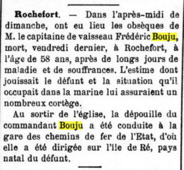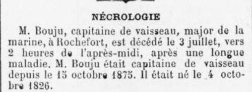 Décédé le 3 juillet 1885 à ROCHEFORT (Charente Maritime)