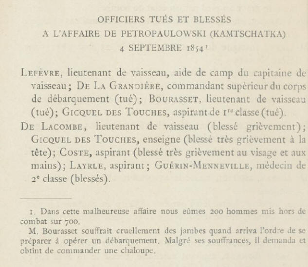 (Seine) - Tué le 4 septembre 1854 à PETROPAVLOVSK, KAMTCHATKA.