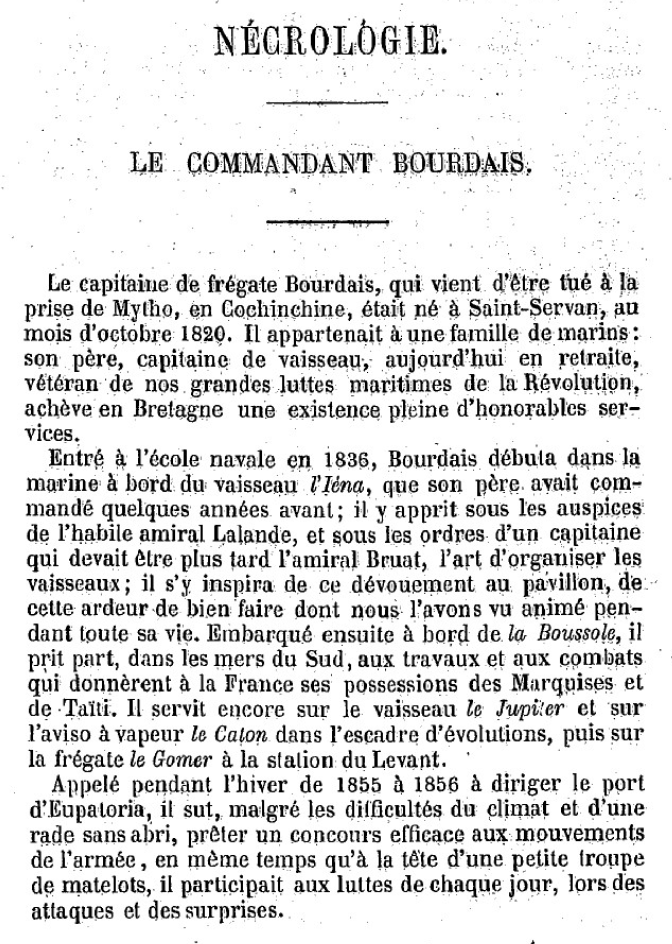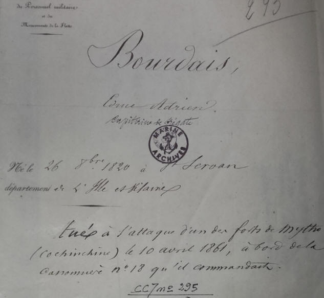 Décédé le 10 avril 1861 à MYTHO (Cochinchine)