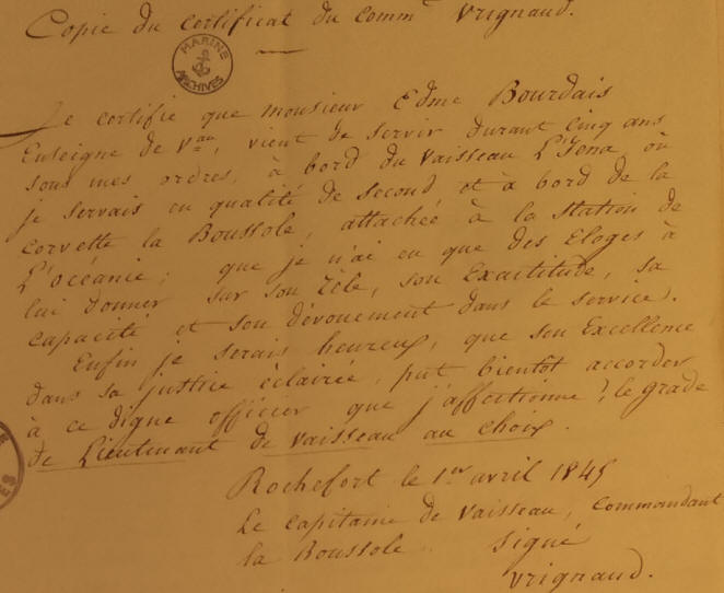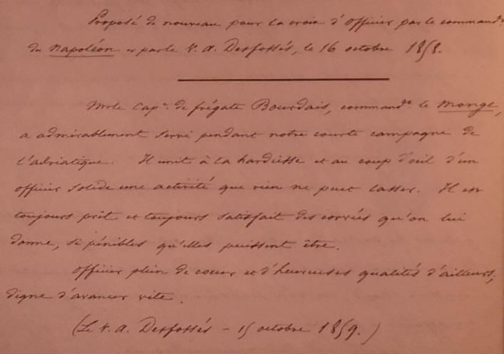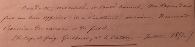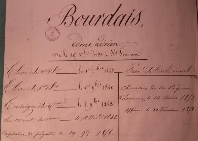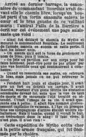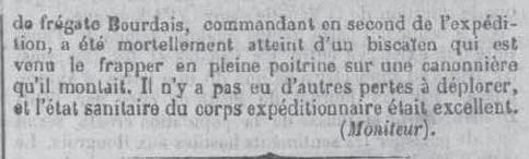 capitaine de frégate Bourdais est tué par un boulet devant cette