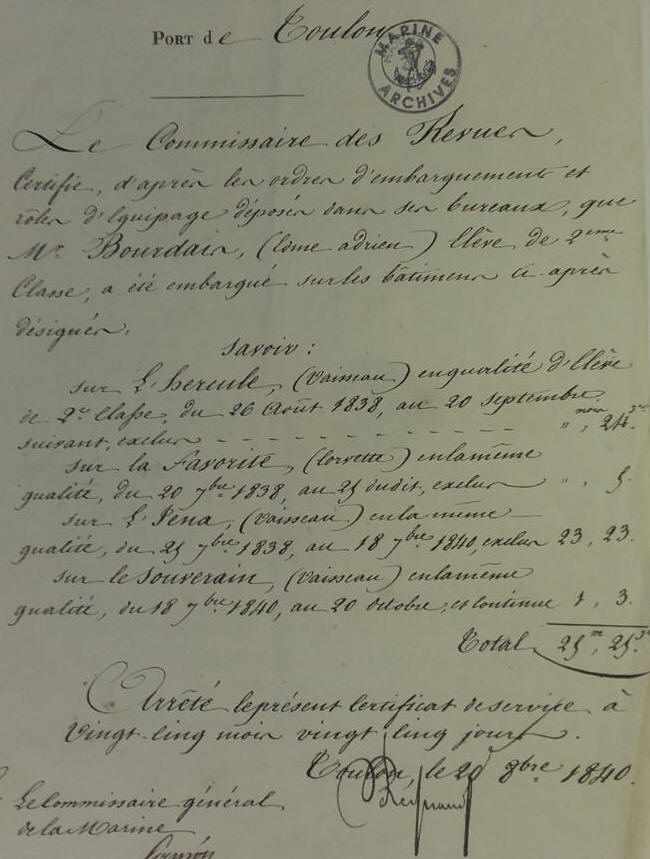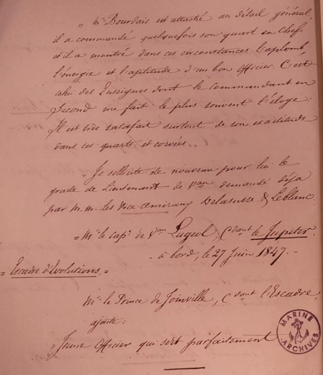 1847, 1849, sur le vaisseau de 86 canons "JUPITER"