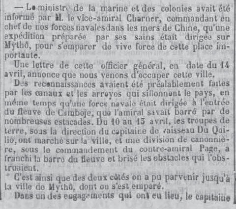 deux compagnies de fusiliers, destinée à prendre My-Tho, le