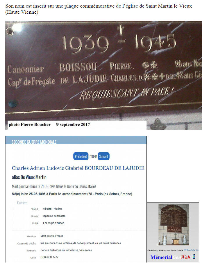(Seine) - Disparu en mer le 21 mars 1944 dans le golfe de GÊNES.
