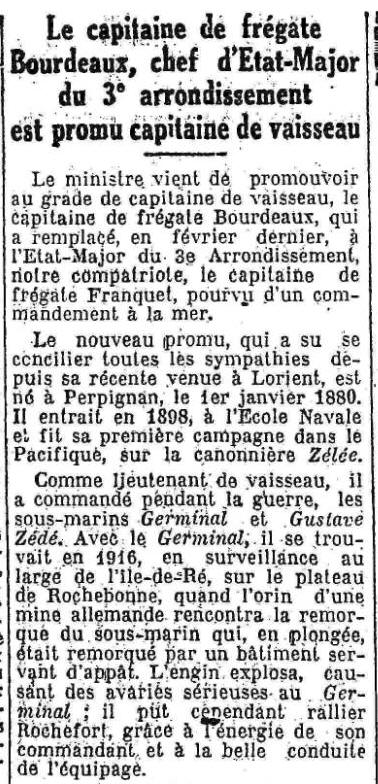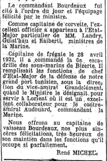 (nomination du 1er octobre 1913), Commandant le sous-marin