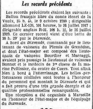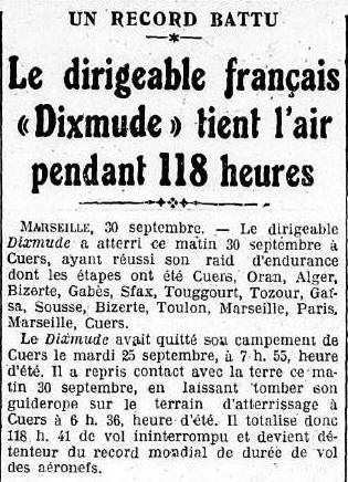 dirigeable en décembre 1922, rallie Cuers en 1923.