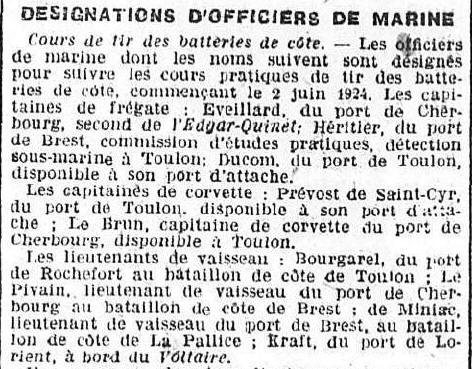 1912 (nomination du 21 octobre 1910), sur le cuirassé garde-côtes