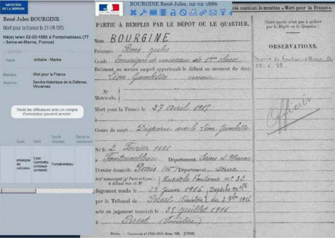 FONTAINEBELAU (Seine et Marne) - Décédé le 27 avril 1915, en mer